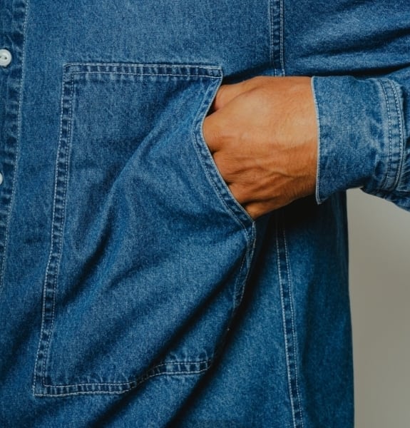 シャツとして着られる軽快さを残しながら、羽織りとしても成立する安心感のあるウェイトです。
