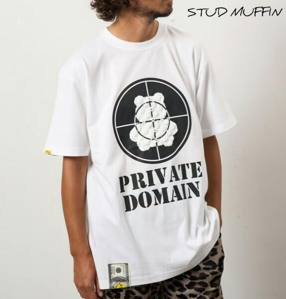 STUD MUFFIN スタッドマフィン Tシャツ 半袖 コットン天竺 ターゲットベアフォームプリント 半袖Tシャツ メンズ トップス ホワイト 614-02874